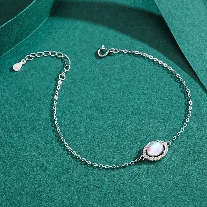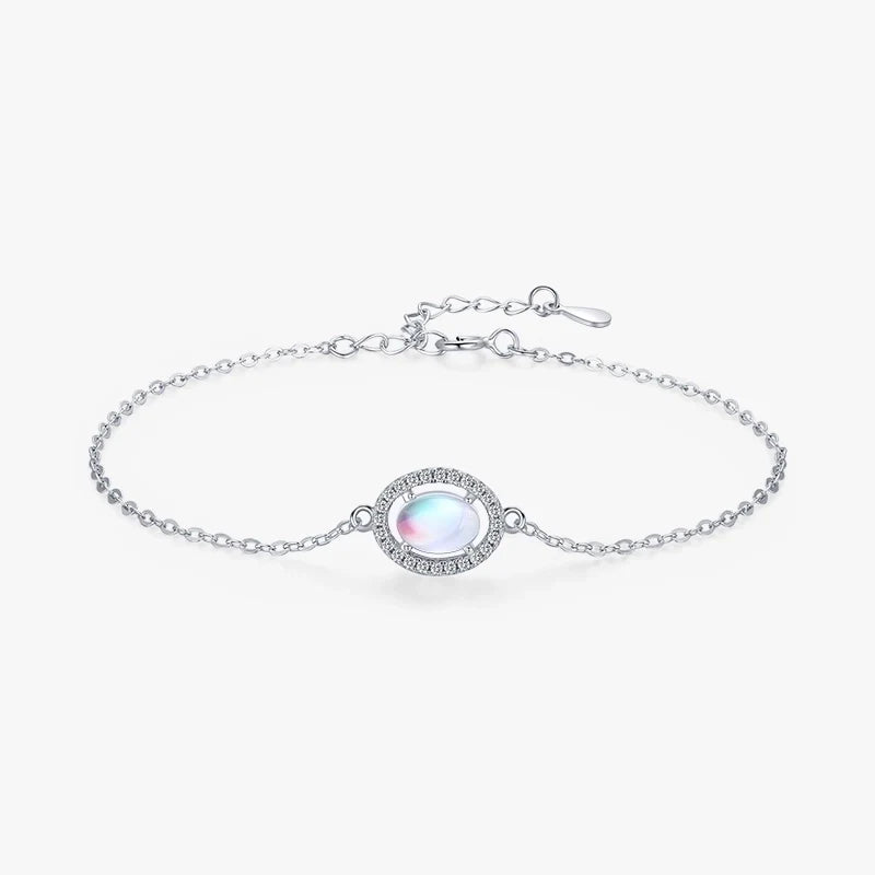 Elegant Oval Moonstone Zircon Rhodium Plated Bracelets