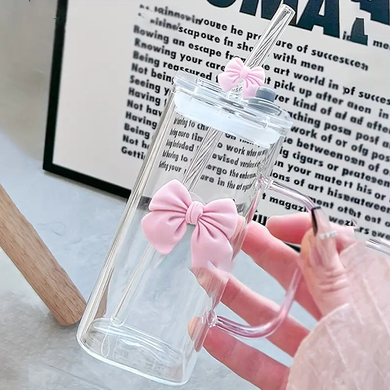 Introducing the 1pc (350ml/11.83oz) square bow glass cup with handle! This transparent handle bow cup is not only a classic mug, but also a versatile tea, juice, coffee, milk, water, fruit, and soup cup. Perfect for any occasion - kitchen, restaurant, party, bridal parties, or even outdoor parties. Cheers!